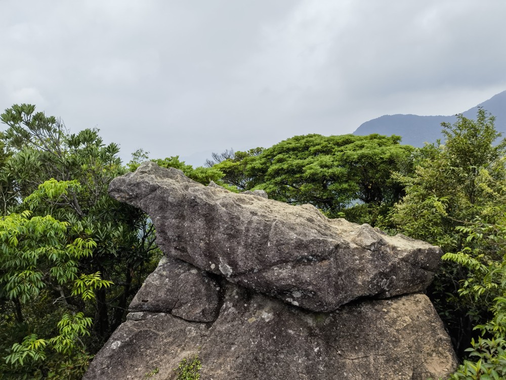 This is the famous Dragon Boat Rock (龍舟石). This cylindrical rock is naturally eroded to a rocky boat. There are many other genuiusly crafted rocks around this hill top.