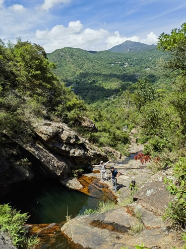 At this height, LingFeng stream joins a catch water. If you wish, you could leave here. Before reaching the catch water, you will face a firm rock cliff blocking your way. You may try the slope of loose rocks on your left to get through this.